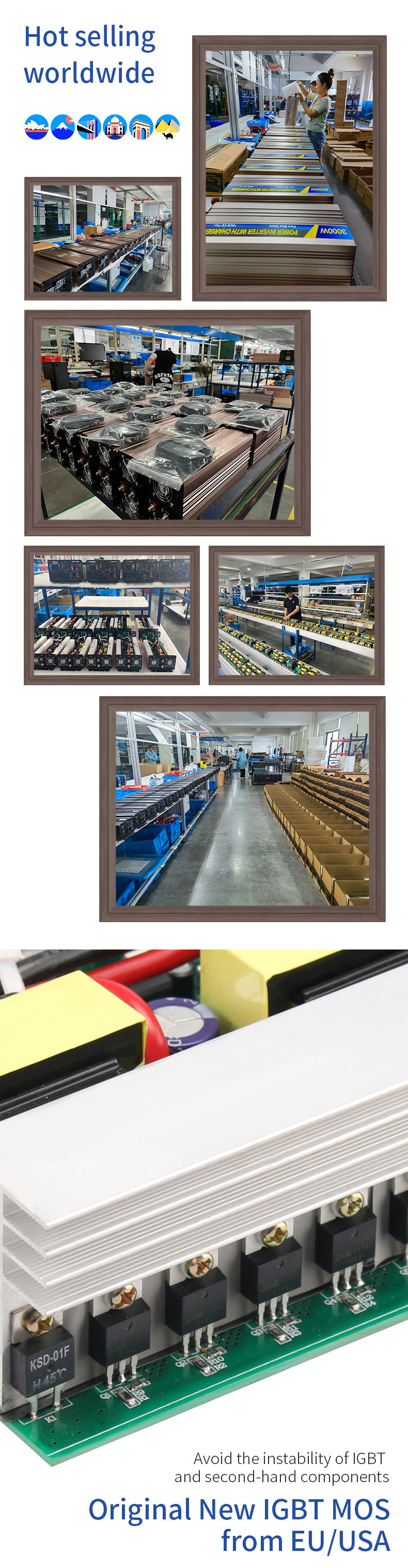 1. This inverter power supply adopts SPWM technology controlled by MCU micro-processing, pure sine wave output, and the waveform is really pure. The unique dynamic current loop control technology ensures reliable operation of the inverter.