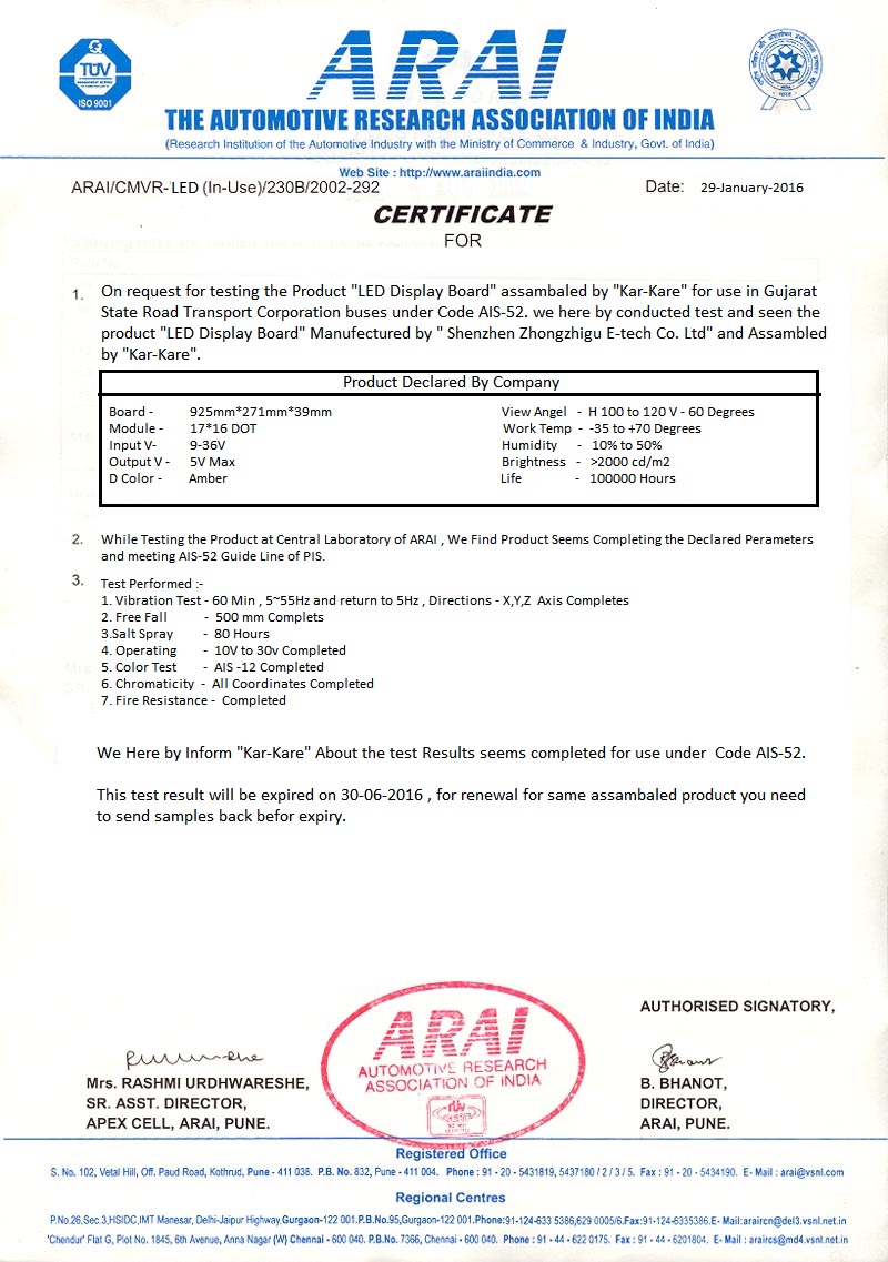 certified | E-MARK, CE, India AIS, ISO9001-2015 |