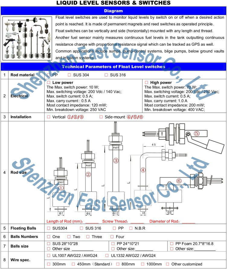 Below is the catalog of float level switch/oil level sensor, you can learn more↓↓↓