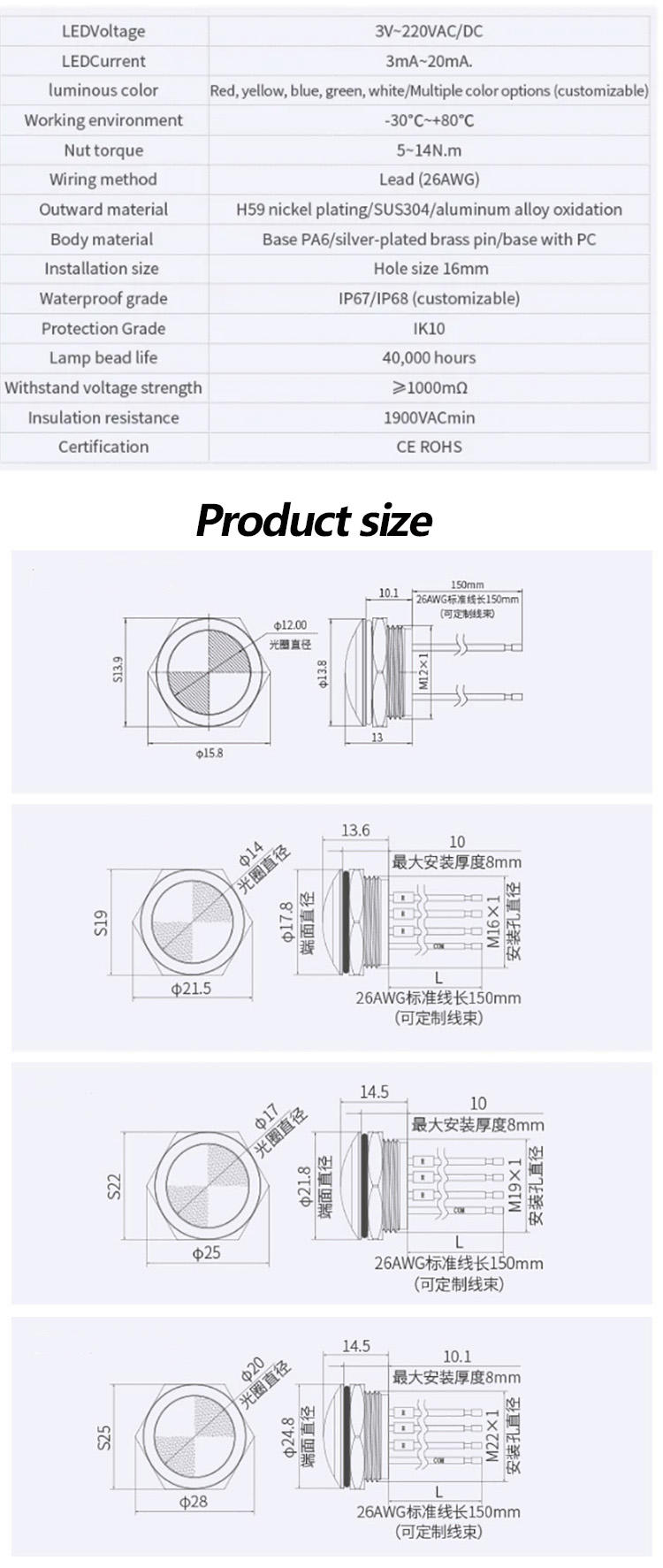 | LED color: | red green blue yellow white | model: | CL12-22L |
