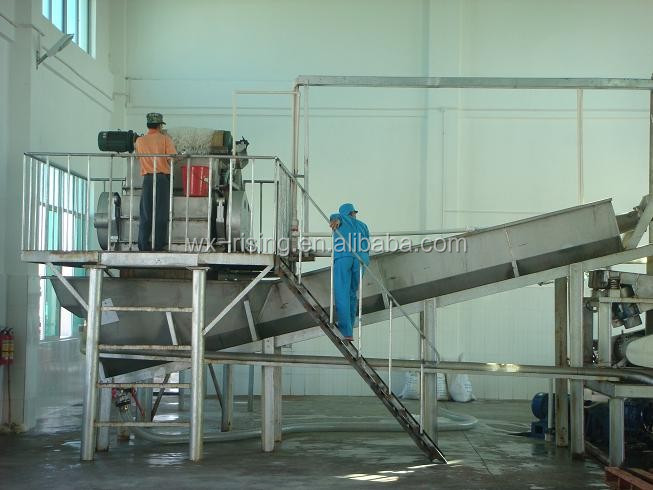 The crushing and washing refined salt equipment line includes: stainless steel hoist, mixer, conveyor, crusher, salt washing machine, iodination machine, centrifugal dryer, dust collector, packaging machine, etc.