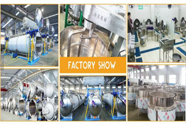 Zhongtai Company is a leading supplier of sterilization equipment for food processing industry, beverage industry, edible fungus processing industry and pharmaceutical industry. The company has national pressure vessel design, manufacturing, installation and transformation service qualifications, and was awarded the title of "High-tech Enterprise" in Shandong Province. Specializing in the manufacture of various sterilization pots, medical sterilization equipment, sandwich kettles, stirring woks, pressure cookers, fermentation tanks, extraction tanks, concentration tanks, mixing tanks, animal oil refining production lines, rice dumpling production lines, (sweet potatoes, potatoes) peeling production lines, central Kitchen equipment and other equipment, products have passed the European CE safety certification and ISO9001-2000 international quality management system certification, and have the right to import and export. A network system integrating raw material supply, product development, process design, manufacturing, finished product testing, storage and transportation, and after-sales service has been formed. Zhongtai Company is the drafting unit of the sterilizer industry standard. The company has an independent R&D and testing center, which can complete the heat distribution testing of all retorts that meet FDA standards before leaving the factory. The products can be widely used in food, beverage, edible fungus processing, medicine, chemical industry and other fields. The products have been sold to all provinces, cities and autonomous regions in the country, and exported to more than 30 countries and regions in South Asia, Southeast Asia, Africa, Europe and the United States. It enjoys a high reputation in the same industry.