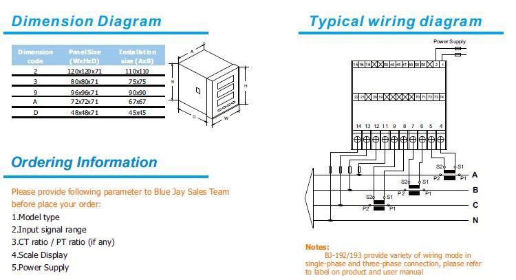 BJ-192/193 series digital display panel meters are specially developed for the indication and monitoring of three-phase circuits, replacing analog display meters, reducing installation manpower and optimizing panel space utilization.