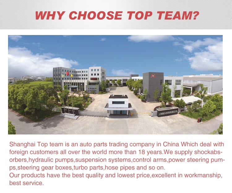 Shanghai Top Team is an auto parts trading company in China, dealing with foreign customers all over the world for more than 18 years. We supply shock absorbers, hydraulic pumps, suspension systems, control arms, power steering pump-.ps, steering gearboxes, turbocharger parts, hoses, etc. Our products have the best quality, the lowest price, excellent workmanship and the best service.