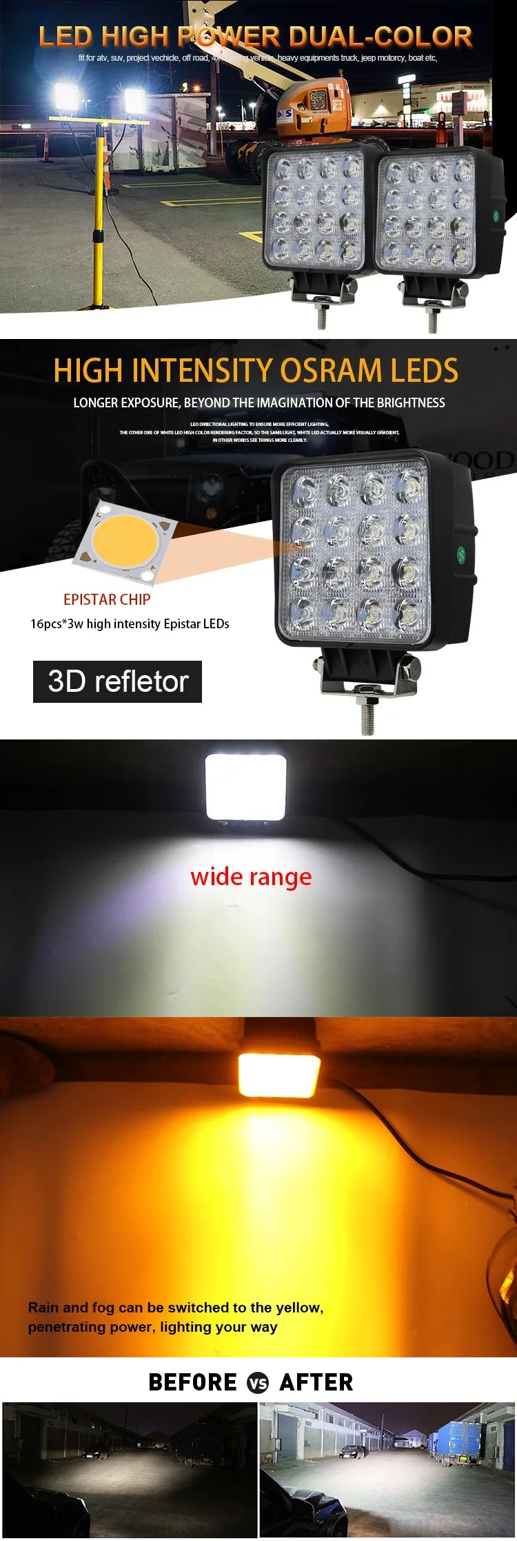 | Product name: | Dual Color Mini Truck Square 72W Car Off Road Amber Led Work Light; | Brand Name: | Led Work Light; |