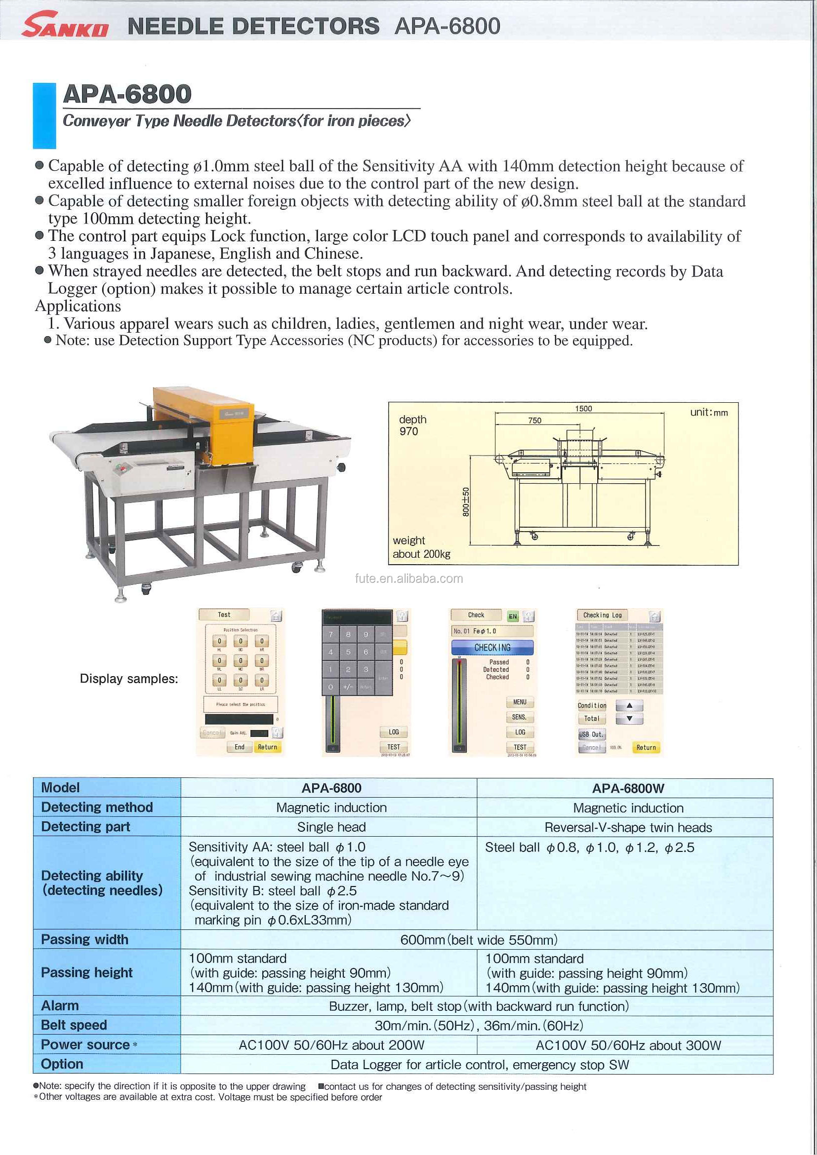 SANKO APA-6800 Standard 1.0MM Height 140MM Conveyor Belt Type Needle Detector