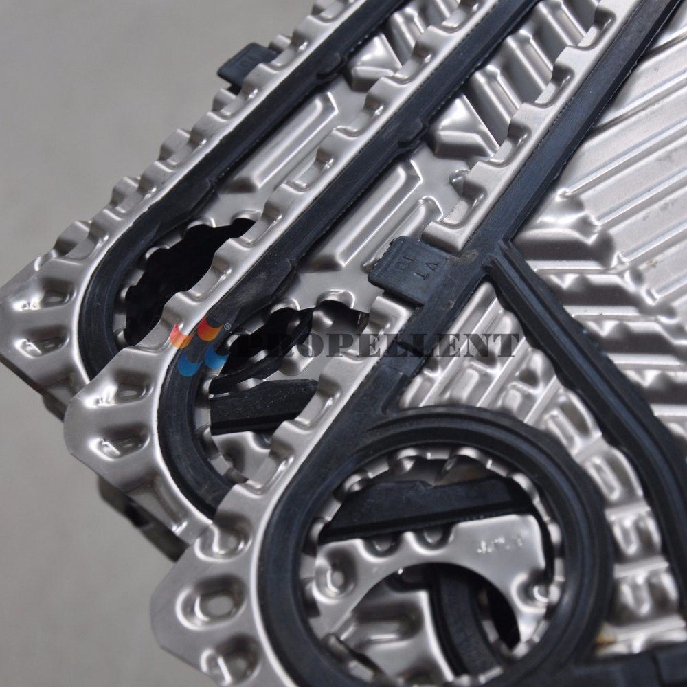Sealing gasket: Installed in the groove along the perimeter of the plate between the gasket and the periphery of the sealing plate to prevent the fluid from leaking outwards, and according to the design requirements, the angle of the hole of the sealing part, the flow of hot and cold liquids according to their respective ports.