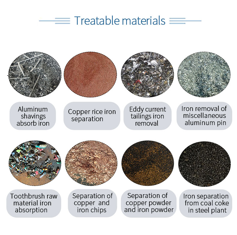 No energy consumption, no pollution, simple structure, easy to use, fully automatic iron removal, no manual operation, automatic separation of raw materials and iron slag.