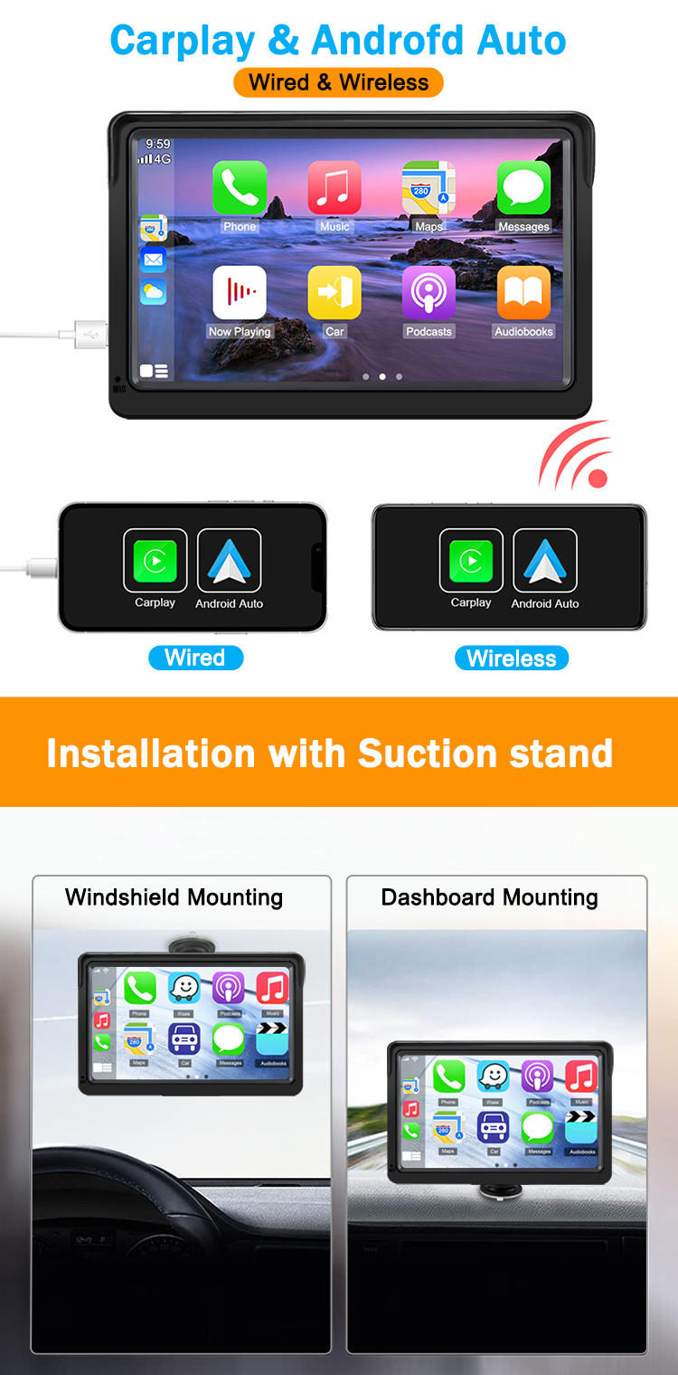 | Screen: | 7 inch | model: | 7090P 7 inch wireless portable carplay |