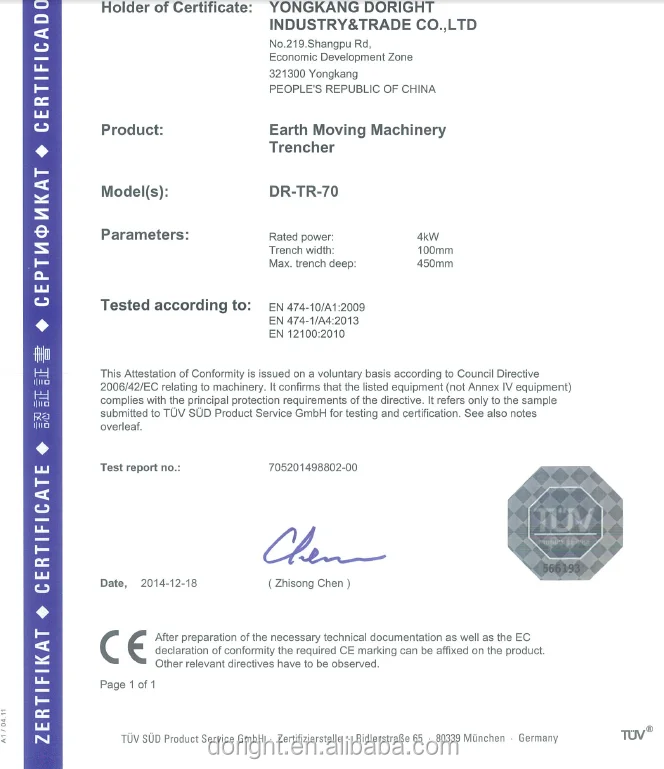 | Packaging Detail: | PLYWOOD PACKING for Farm Mini Trencher; | After-sales Service Provided: | Engineers available to service machinery overseas; |