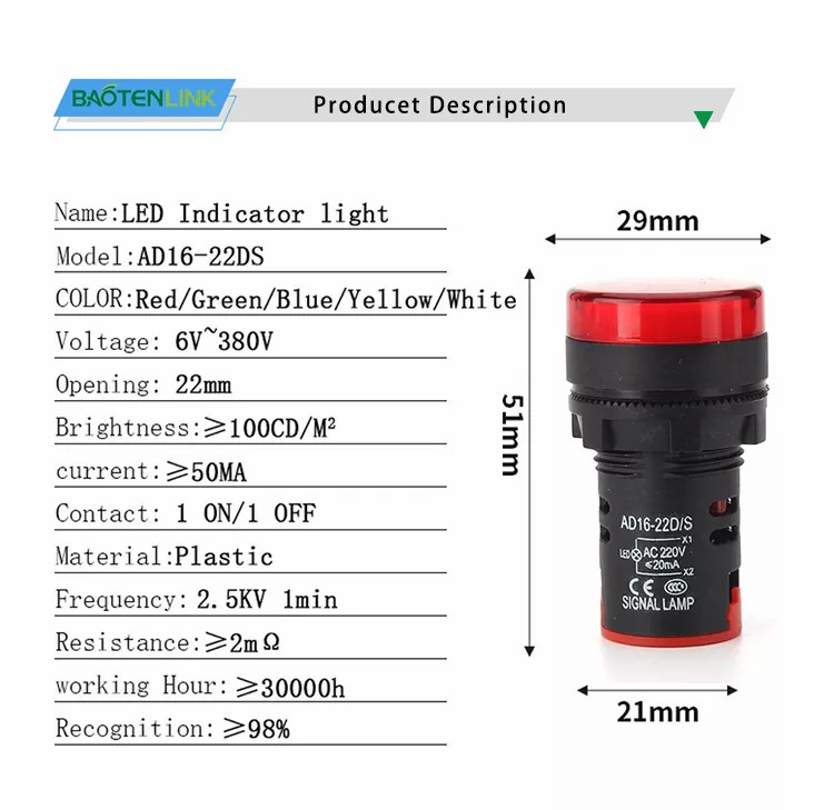 | product name: | signal light | product name: | Panel Mount Signal Indicator LED Indicator |