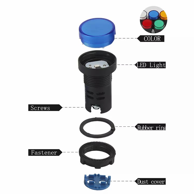 22mm Industrial Cabinet Manufacturer Light 220V AC DC Equipment Panel Mount Signal Indicator LED Indicator