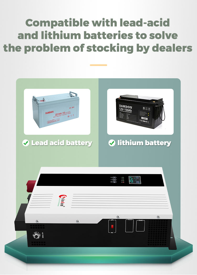 Maximum charging current (mains + PV) (Built-in MPPT controller model) | 80A | 60A | 100A | 100A | 150A | |||||||||