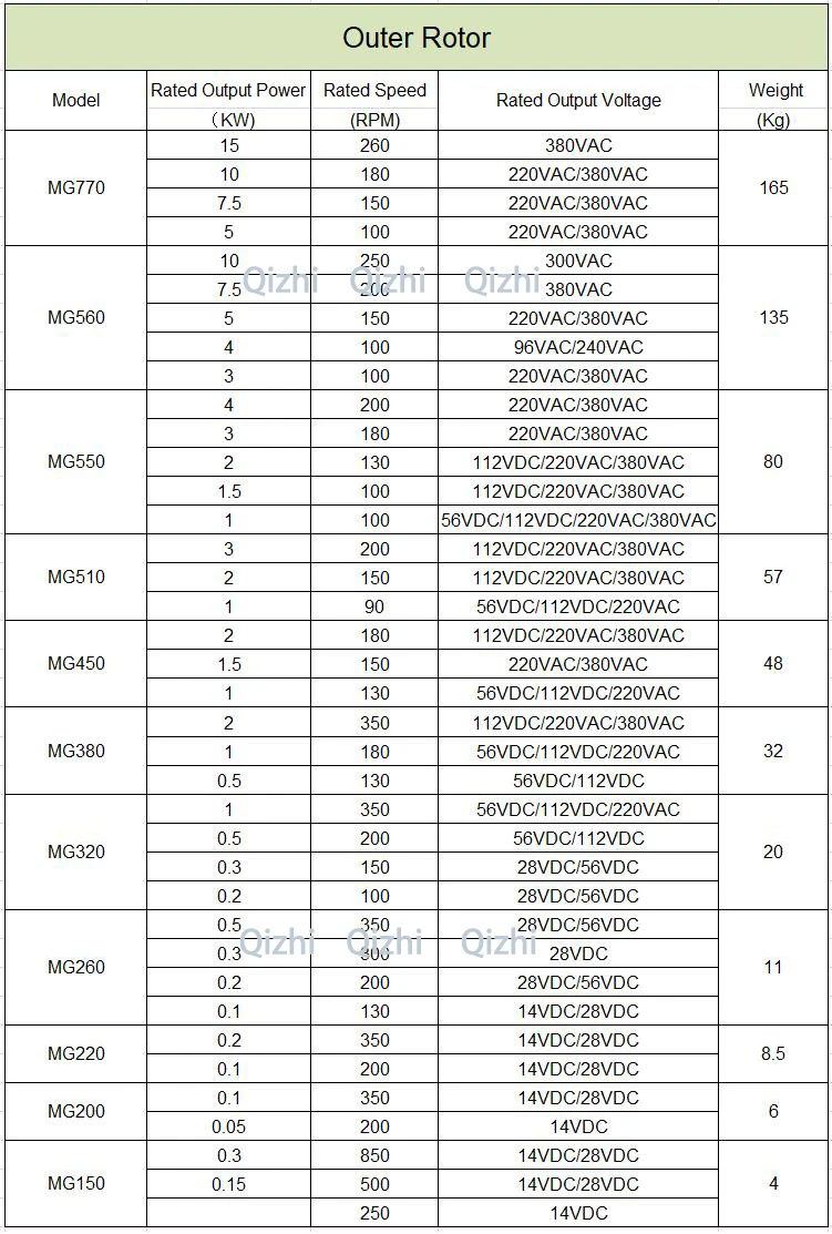 PMG770-5.0KW/100RPM PMG770-15KW/260RPM