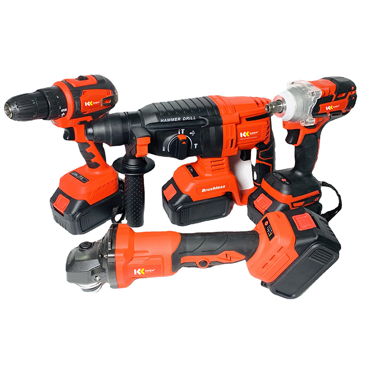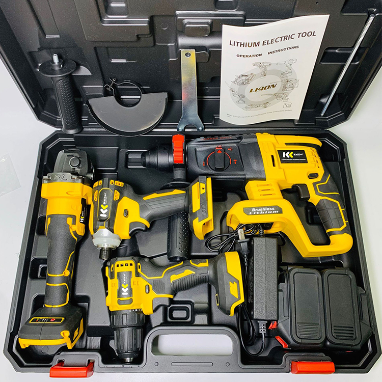 Toolbox contains: 1. Electric drill 2. Impact wrench 3. Angle grinder 4. Light electric hammer 5. Lithium battery*2 6. Charger 7. Plastic box | ||