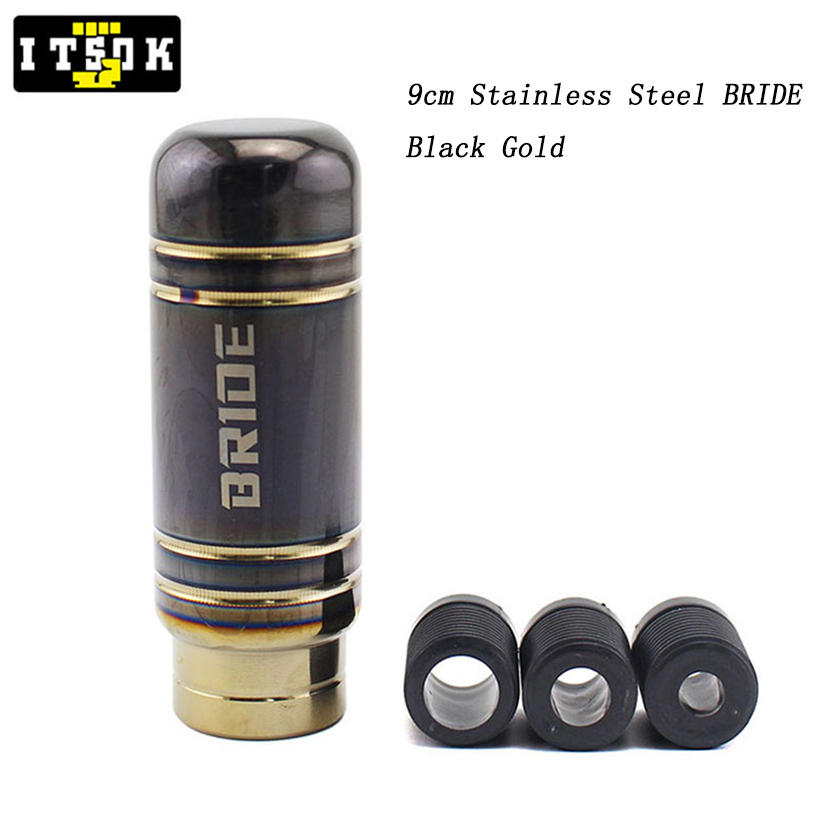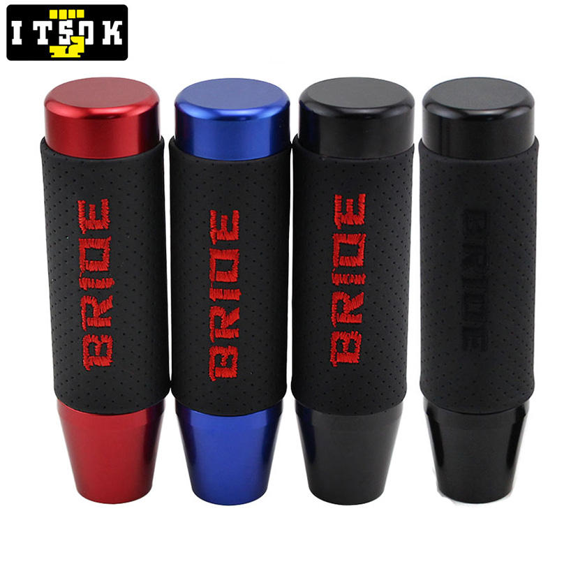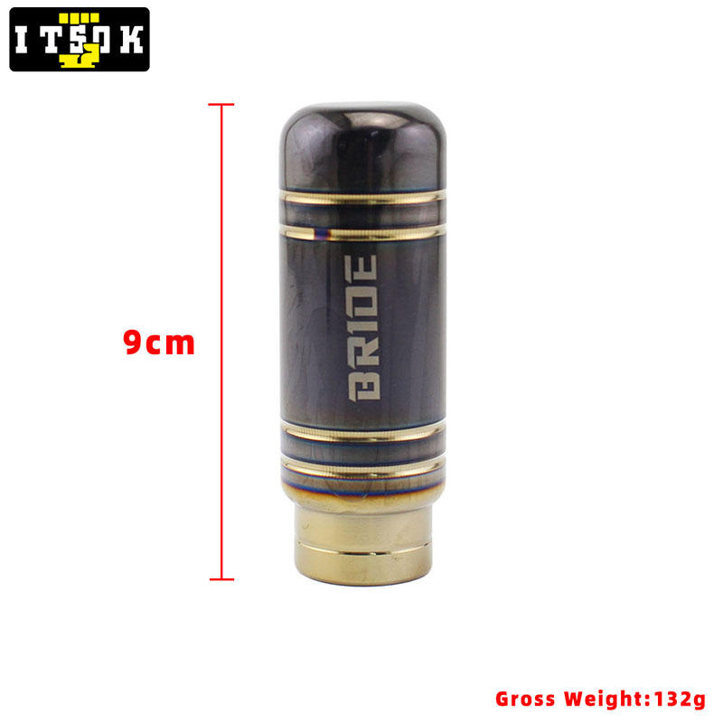 | product name: | JDM Racing Sports Universal Car Shift Knob for BRIDE MUGEN | Packaging Details: | JDM Racing Sports Titanium Burnt Blue Gold Shift Lever Leather Aluminum GM Shift Lever Knob for BRIDE MUGEN |