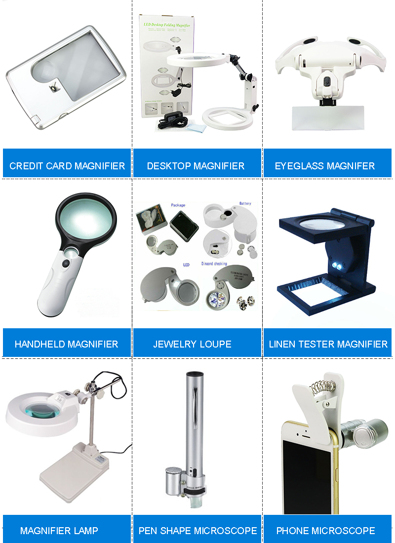 | 7. Linen tester magnifying glass | 8. Glasses magnifying glass | 9. Jewelry Magnifying Glass |