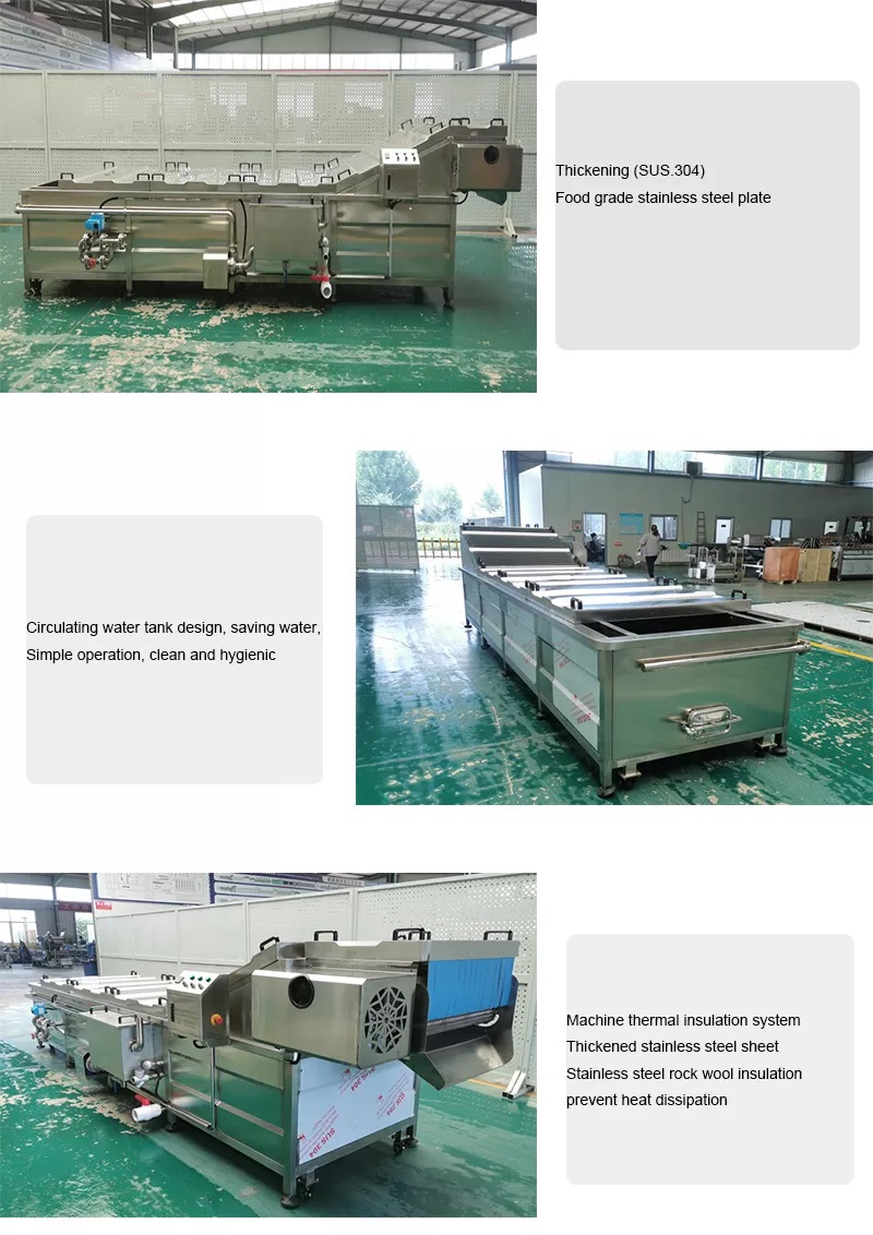 1) The whole machine is made of food-grade stainless steel, which is easy to clean and meets the relevant food hygiene regulations; 2) In order to ensure that the temperature error is small, an electronic temperature sensor is used to realize automatic temperature sensing and temperature control; 3) The tank body is made of 2mm stainless steel; the force-bearing part 3mm stainless steel is used; the frame body is made of 50×50×2mm stainless steel square tube; the outer insulation is made of 1mm stainless steel; the upper cover is made of 1.2mm stainless steel; 5) In order to ensure the supply of steam, a steam regulating valve is used; it is also equipped with a manual valve, which can realize automatic and manual control. 6) In order to better drain the equipment and completely remove impurities, the bottom of the equipment adopts a low-slope design to reduce the dead angle of sanitary cleaning and facilitate cleaning. 7) This machine can also be equipped with sound and light alarm function. After the set work is completed, the production personnel can be automatically reminded to proceed to the next step.
