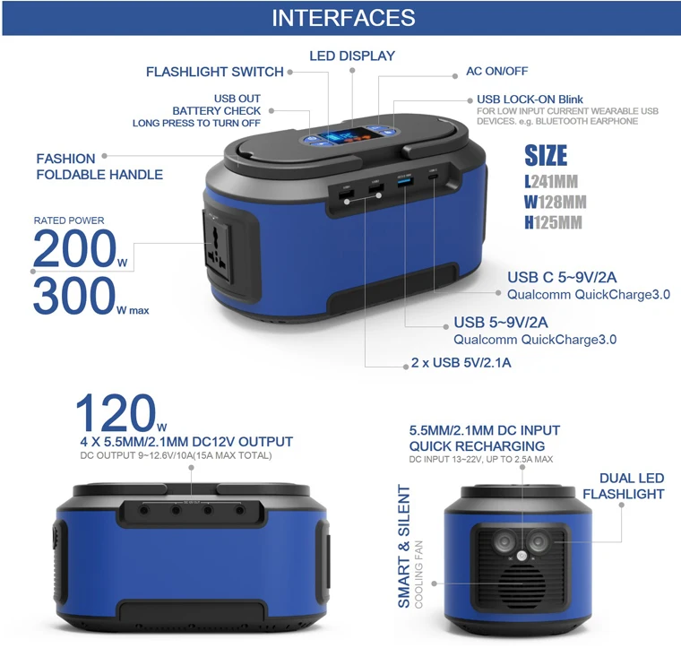 | product name: | 222Wh emergency power supply AC and DC devices 200W output; | Application: | Home; |