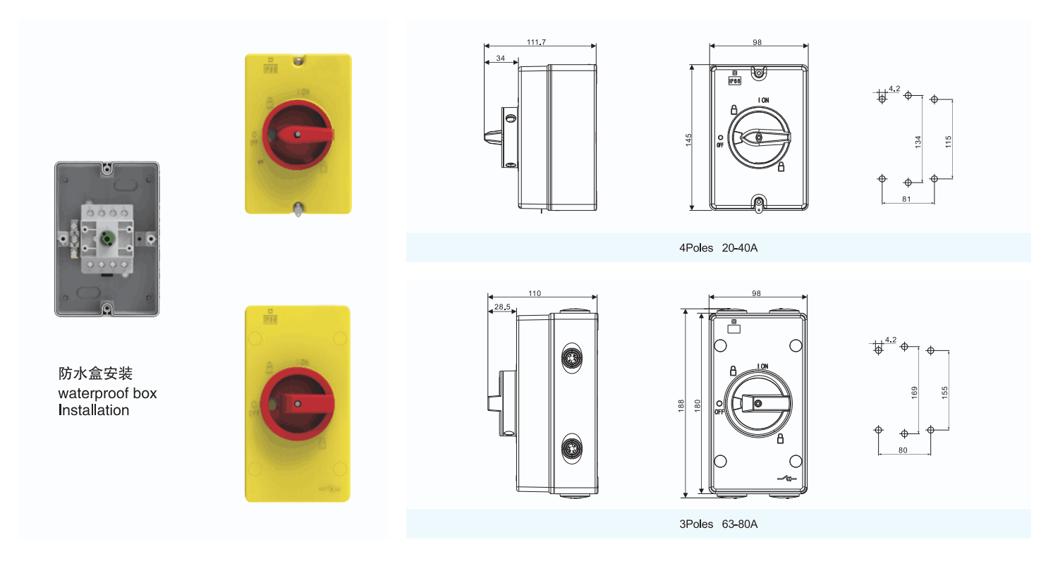 Various installation methods: panel installation/rail installation/sealed switch box |