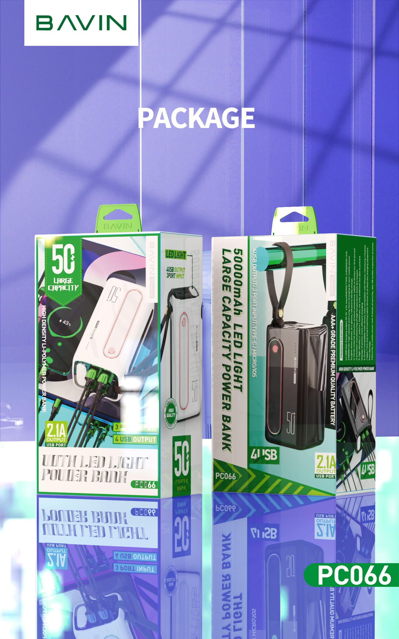 feature | 50000mAh polymer lithium battery 3 inputs (Micro usb + Type C + ) 4 outputs (Micro USB * 4) Strong LED Flashlight for Outdoor Camping |