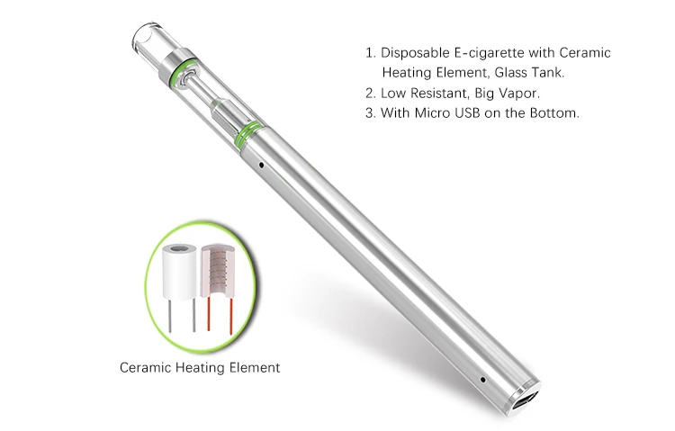 Disposable E-cigarette with Ceramic Heating Element, Glass Tank.