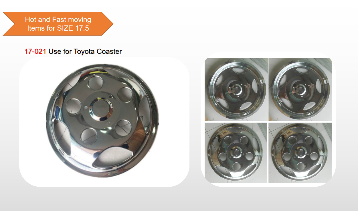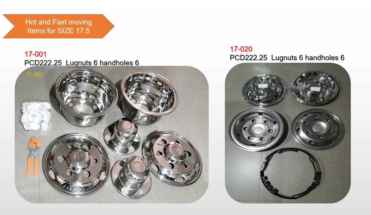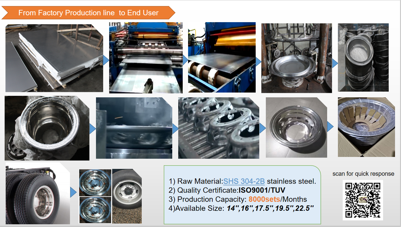 1) Raw material: SHS 304-2B stainless steel. 2) Quality certificate: ISO9001/TUV 3) Production capacity: 8000 sets/month 4) Available sizes: 14'',16'',17.5'',19.5'',22.5''