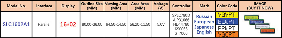 | Controller: | SPLC780D or equivalent | brand: | Surano |