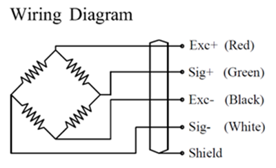 Wiring | Red: Exc+, Black: Exc-, Green: Sig+, White: Sig- |