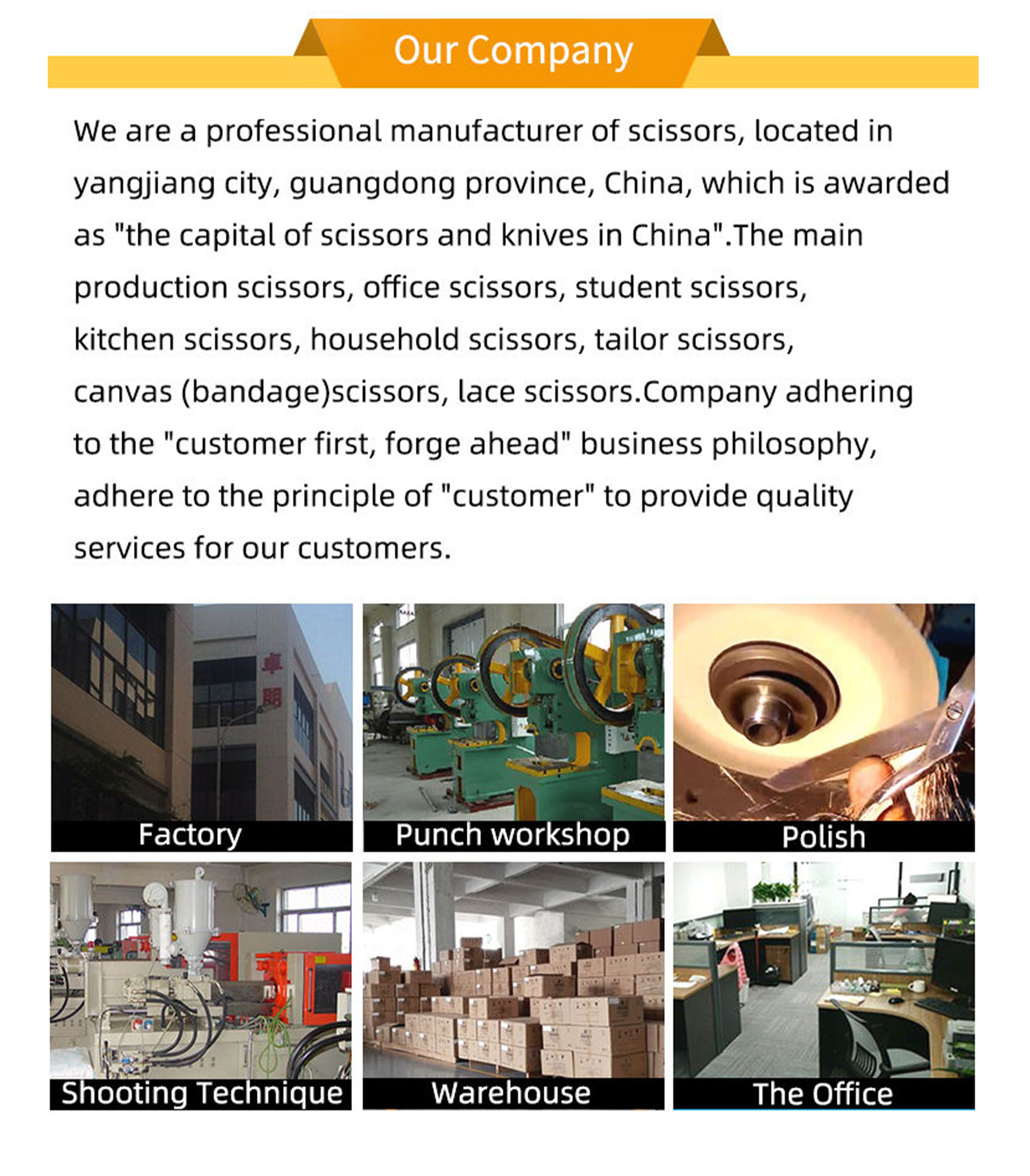 A: We are a professional manufacturer of scissors. Our factory is located in Yangjiang City, Guangdong Province, China.