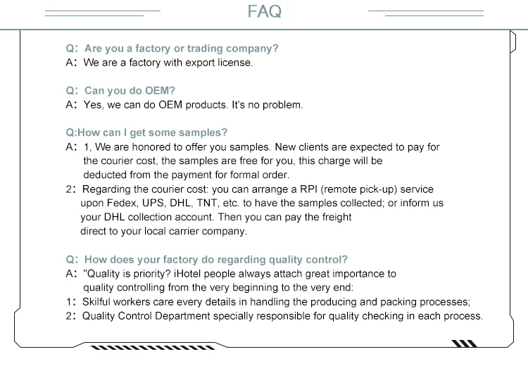| product development capability: | 15 days and sample is free of charge; | quality control: | 100% full inspection; |