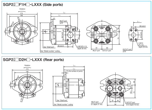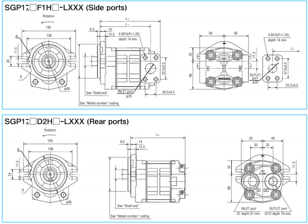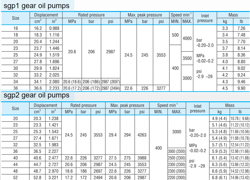 SGP1 SGP2 SGP2B27L076 SGP2A52D2H1L hydraulic gear pump SGP1A30R634