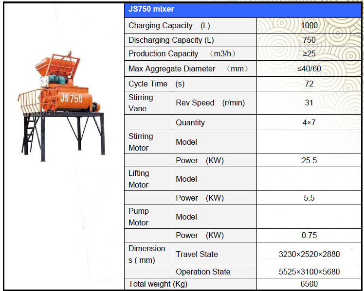 Product Description of Cement Mixer Concrete Mixer Force Action Mixer JS750