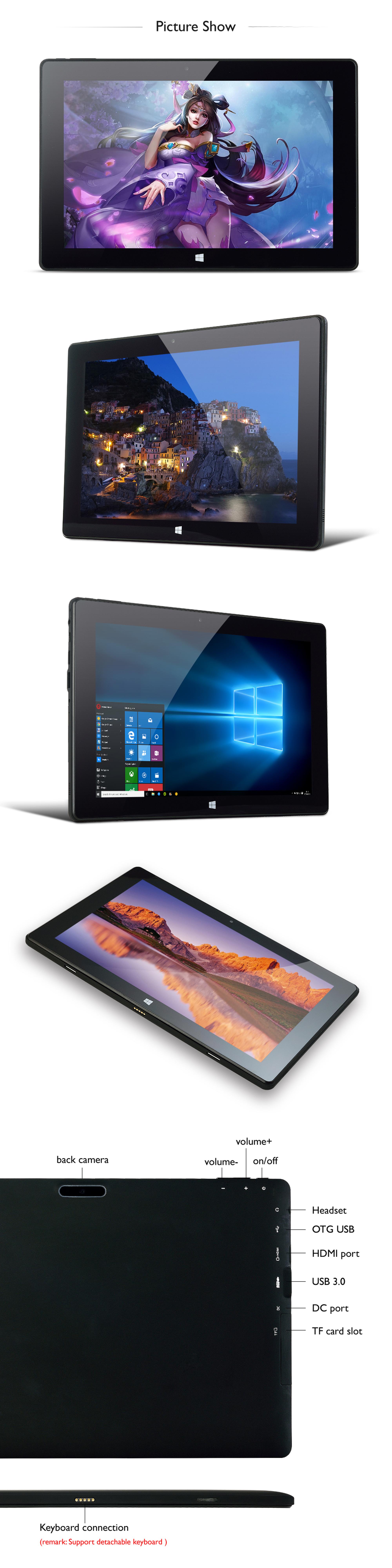 10 inch intel z8350 quad core 4gb ram 64gb windows tablet pc support detachable keyboard
