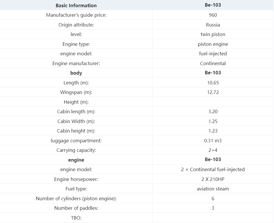 The new generation of light multi-purpose Be-103 amphibious aircraft developed and produced by Sukhoi Aviation Holding Company has passed the VRF certification. On October 26, 2001, it obtained the type certificate ST204-Be-103 issued by the International Aviation Association. In July 2003, it obtained the airworthiness certificate (NO.A55CE) from the Federal Aviation Administration of the United States, and obtained the airworthiness certificate and production license of China. . Fly in accordance with instrument flight rules and visual flight rules.
