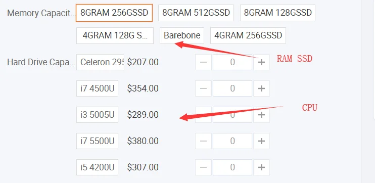 | CPU | Celeron 2955U/Core i3 5005U/Core i5 4200U/Core i7 5500U |