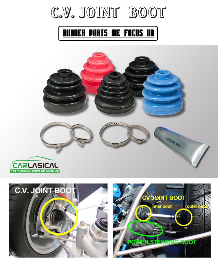 CV joint guardIt is a rubber part that covers the CV joint at the CV shaft of the car. It prevents dust and water from entering the CV joint and protects the CV joint.