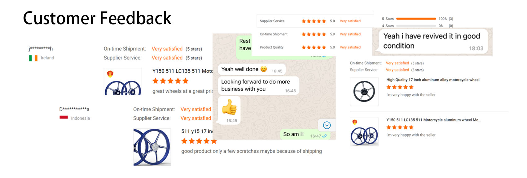 Q1: Can you send me a sample?Answer: Yes! We can send you samples to check our quality. You need to pay the sample fee, but we will refund you once you place bulk order from us.Q2: Do you have design ability?A: We are a manufacturer and can provide customized service, just send drawings or samples, new ones will be made.Q3: Can I add my logo on the motorcycle parts?A: Yes, we can work with OEM and ODM. But you should send us the trademark authorization letter.Q4: Why should you buy from us not from other suppliers?A: 1. Flexible management system, able to communicate directly with the boss to improve project progress. 2. Competitive price. We are a factory and can increase or decrease the cost reasonably for you. 3. Sound departments and professional teams. We have independent departments from design to quality inspection. The heads of various departments have been engaged in the wheel hub industry for 15 years and can effectively provide guarantee for the products. 4. The production process is transparent, and the production status of the product is recorded for you in real time.