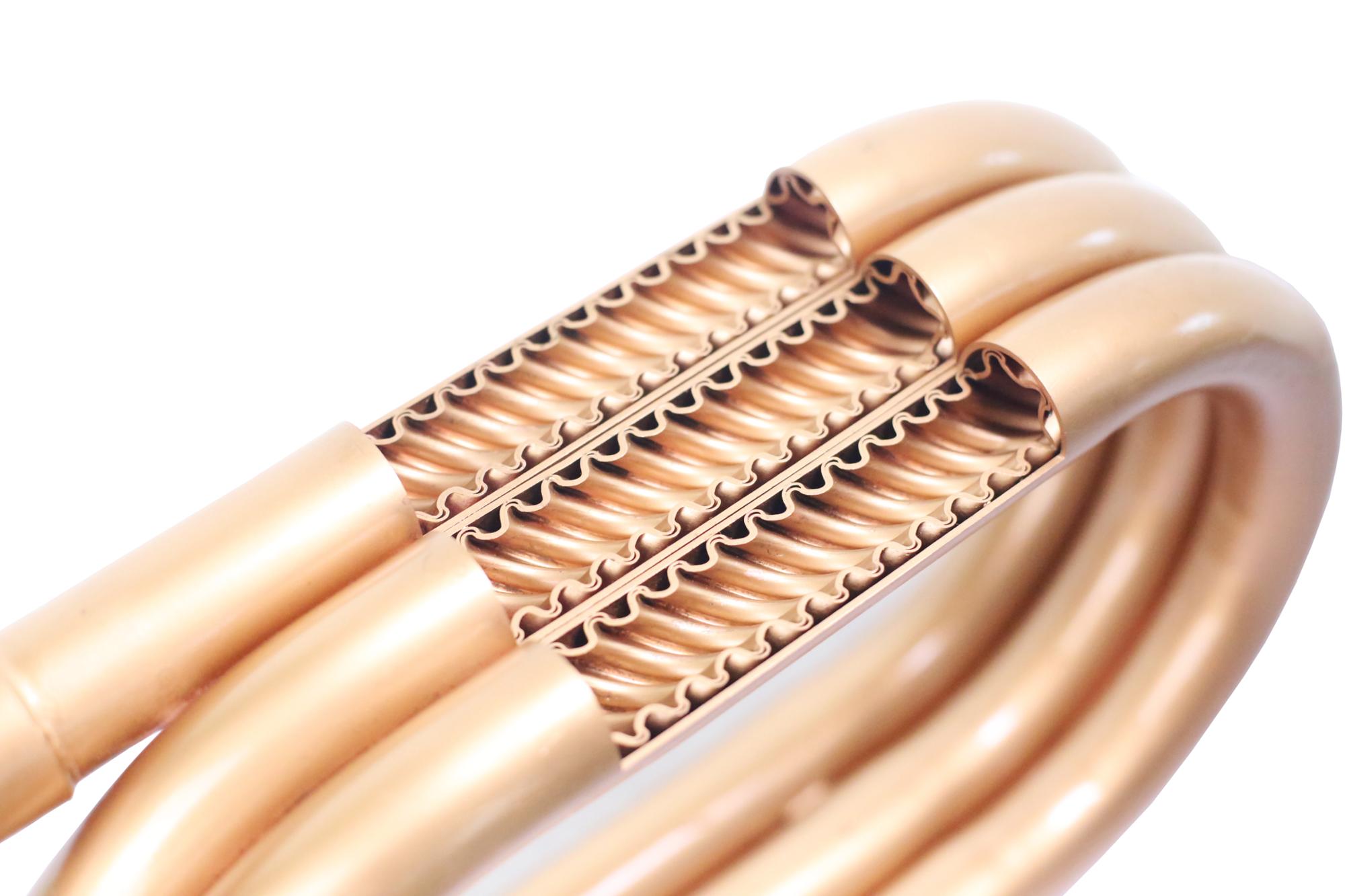 1. The water flows in the inner tube, and the refrigerant flows in the gap between the inner and outer coils, which enhances the turbulence intensity and heat transfer coefficient.