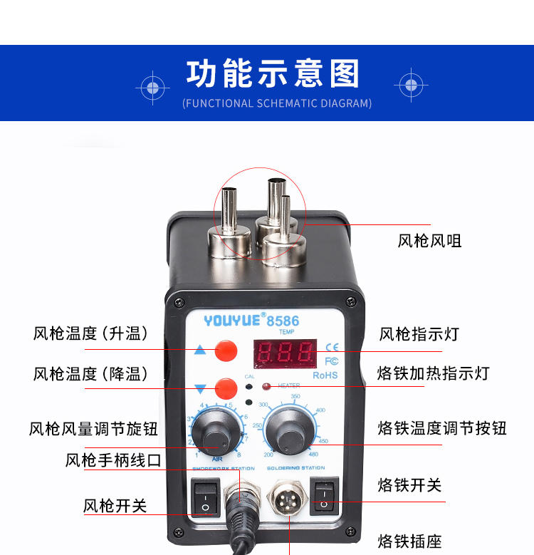 Youyue 8586 | UYUE 8586 Soldering Station Manufacturing 1. Temperature control 2. Cell phone length: 196MM 3.110V 220V can be 4. Anti-static |