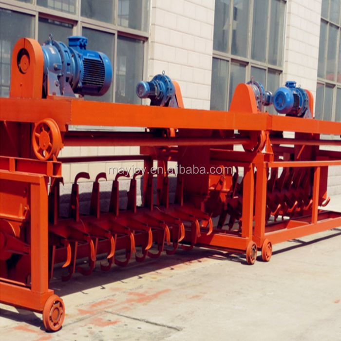 The working part of the slot lathe adopts advanced roller transmission, which can be lifted and cannot be lifted. The liftable type is mainly used when the width of the tank body does not exceed 5 meters and the pile depth does not exceed 1.3 meters. The bearing seat of the turning device is fixed on the stacking frame, and the two main shafts are fixed in the bearing seat, and each main shaft is welded with a plurality of turning machine shafts arranged at a certain distance and staggered at a certain angle. , each turn pile has a stack of plates welded to the shaft. The stacking device is connected with the running device through pins. This machine is suitable for aerobic fermentation and can be used in conjunction with sunlight fermentation chambers, fermentation tanks, and mobile machines. The fermenter can discharge continuously or intermittently. High efficiency, stable operation, sturdy and durable, even rotation.