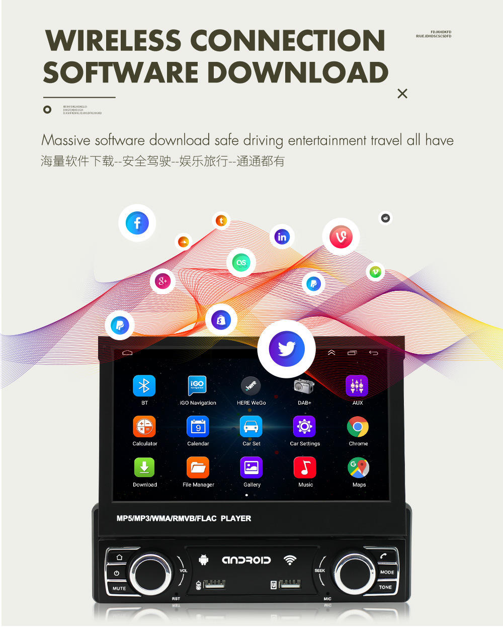 | connect: | USB, Bluetooth, SD card, TF card, built-in WiFi | place: | Dashboard |