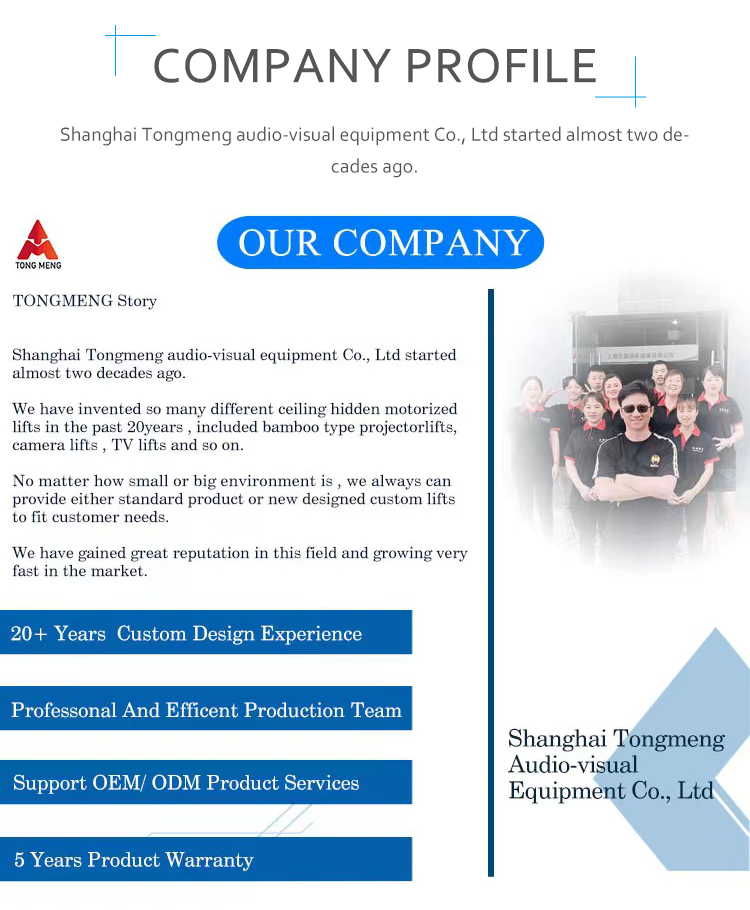 We specialize in designing audio-visual concealment equipment for our clients. We invented the bamboo projector lift in 2010, and have developed a full range of products such as screen table electric lifts, TV swivel lifts, etc. in the past 20 years.