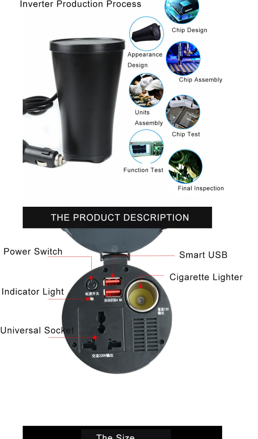 | Packing List | 150W cup-shaped car inverter*1 Operating Instructions*1 |