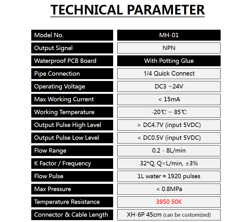 sensor | Hall Effect; Pulse Signal | water pressure | < 0.8MPA | |||