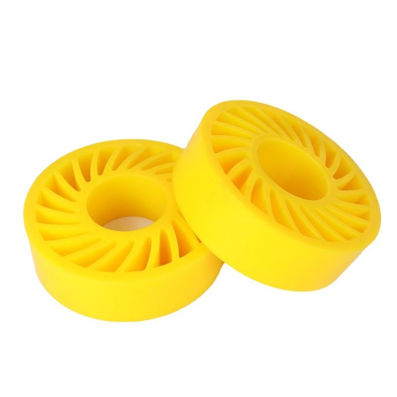 Polyurethane anti-pressure wheels are ideal for manufacturing and industrial applications, including:Corrugated Cardboard and Textile Manufacturing Printed Product Labels Material HandlingWe can create unique blade patterns to ensure the wheel is "crushed" (or bent) to your specifications. By varying the stiffness as well as the frequency and geometry of the blades, the possibilities are virtually endless.