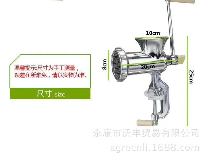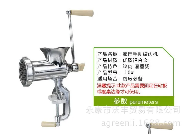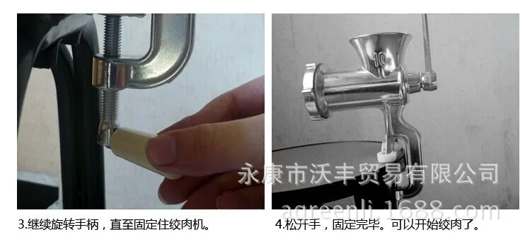 2. Install. Many people like to put the machine on every time the meat is eaten, but this method is not advisable. Ideally, each meat grinder should be cleaned and placed in a wooden cabinet in parts or completely dry and reassembled rather than assembled immediately. Installation starts with assembly. In the inner cavity of the roller feeder, in order to reduce wear and tear, a drop of cooking oil can be dropped on the shaft, and a small amount of cooking oil can be added between the shaft and the rear end plastic sleeve in advance for easy use. The knife head is installed on the drum, pay attention to the knife edge facing outward. Then install the chute on the cutter head, gently shake the machine to closely match the three chambers, install the fastening nut to the side leak, pay attention to the tightness, too loose will make the minced meat leak from the side seam, too tight will make the minced meat It leaks from the side seams. Damaged silk report. Finally, install the twist handle, pay attention to the handle facing outwards, put it in after aligning with the gap, and then tighten the fastening screw. It is relatively simple to install the machine. The most important thing is to choose the appropriate on-site accessories, such as a relatively large wooden cutting board, align the bite with the cutting board, and tighten the fastening screws on the edge. Because the meat is relatively hard, it is best to use a screwdriver and other tools to assist in fixing the fuselage to prevent the machine from being damaged during work.