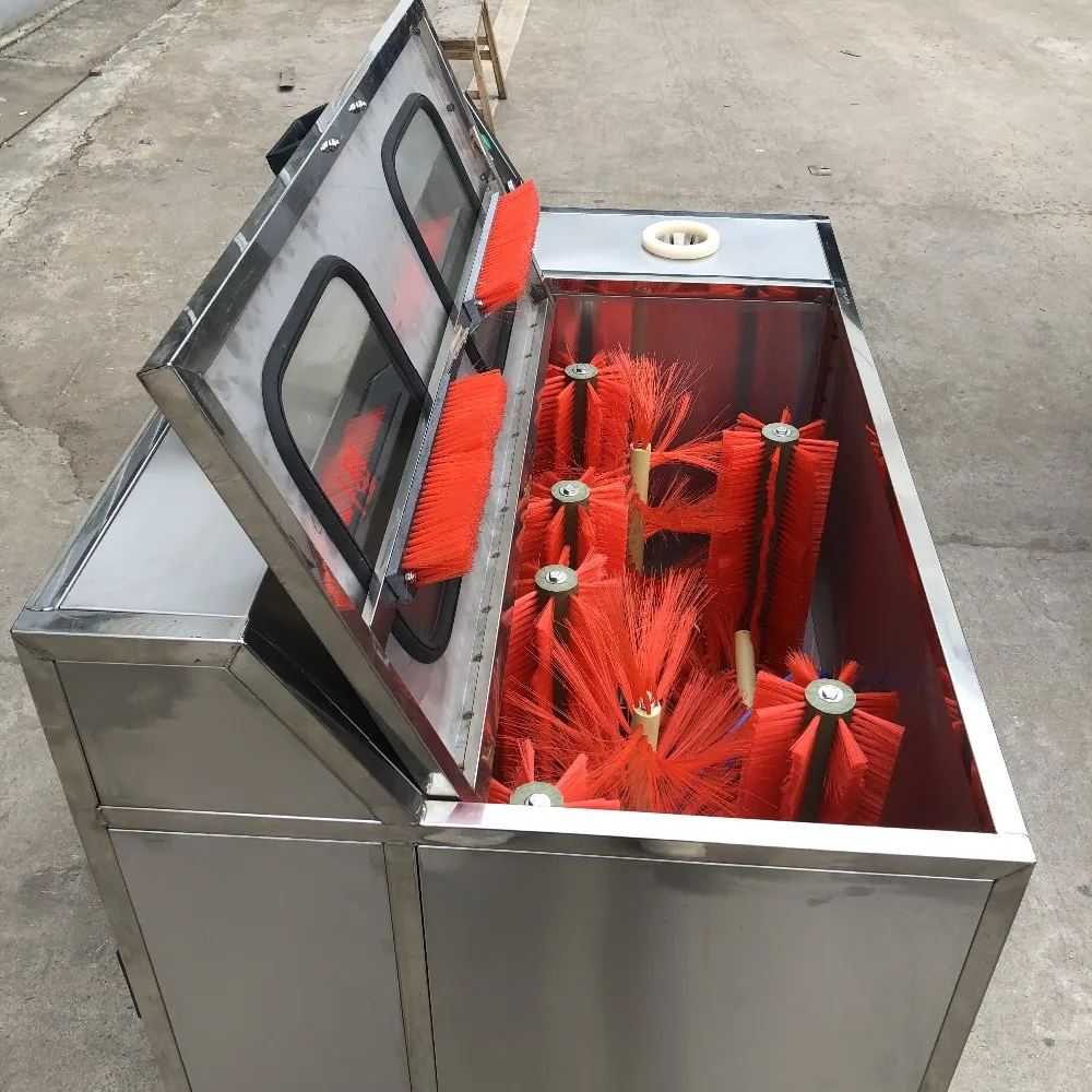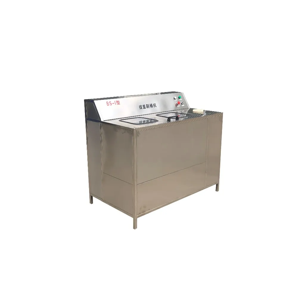 It is used to remove the 5 gallon cap and brush the 5 gallon bottle inside and outside.In relative-enclosed circumstances (preventing scrub solution to out), the head of power by means of gear mechanism to drive (bottle, bottleneck. Bottom) shaped brush rotary. Simultaneously high-pressure pump aspirate water from tank and spray on those part continuously. In this way brush and continuous washing with water can wash the shoulder of bucket, bucket and bottom. all-in-one to guarantee it clean everyside.