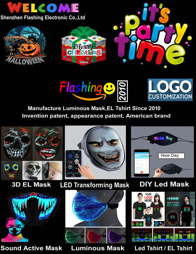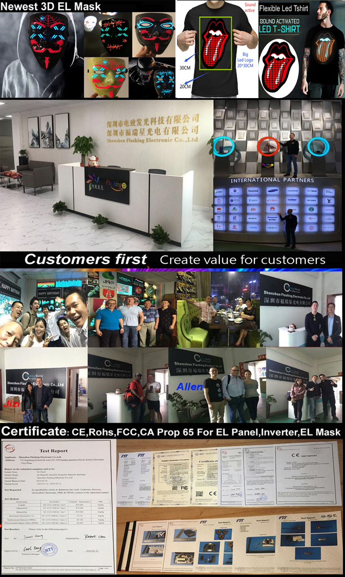 We are a large professional company specializing in the production of EL masks, EL T-shirts, EL glasses, EL posters, and EL sheets.