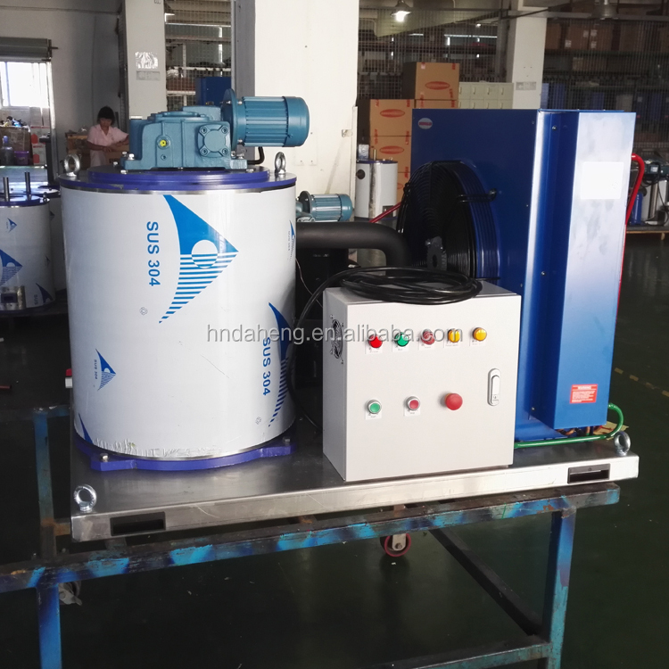 When the flake ice machine is working, the refrigerant absorbs the heat on the inner surface of the evaporator by throttling and evaporating in the refrigeration system, so that the water flowing through the inner wall surface of the evaporator is quickly cooled to below the freezing point, and freezes instantly, and the formed ice is pressed by the ice blade. Certain rules cut into ice cubes and go into the freezer. After the freezer is full until it is shut down, the ice level will automatically open, and ice will be generated again. This cycle ensures that users can use ice normally.